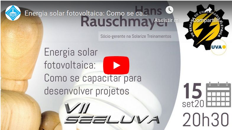Assista à gravação da palestra "como se capacitar para desenvolver projetos com energia solar fotovoltaica"