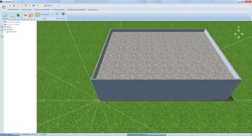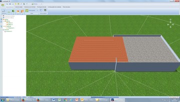 Primeiro crie um prédio de telhado plano, nas dimensões do edifício final (nosso exemplo tem 20 x 15m, com 4m de altura). Na laje coloca a platibanda, usando a ferramenta na Vista do Objeto (exemplo: largura 0,2m, altura 0,7m).